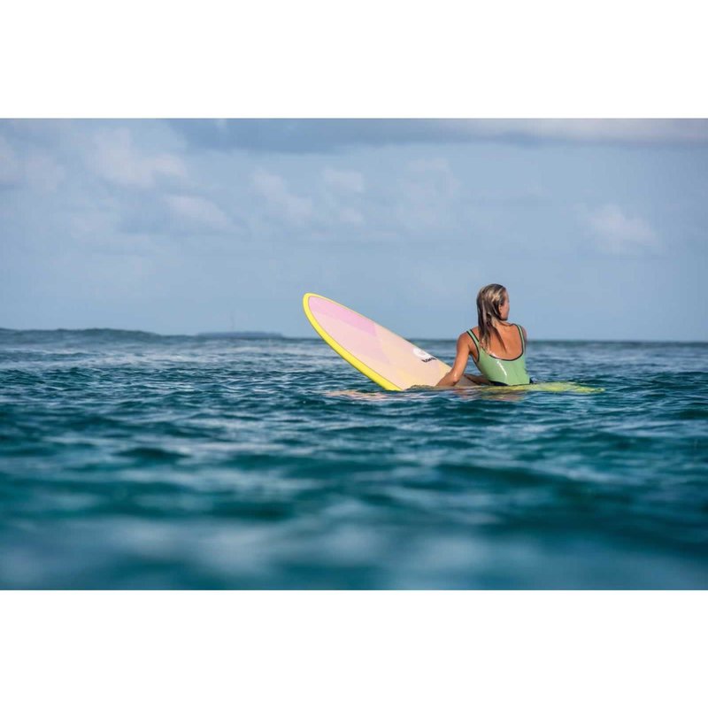 Das Medium Full Nose Design und der flache Mid-Entry versorgen das Board mit genügend Volumen für kleinere Tage mit schwächeren Wellen. Wenn es größer wird, reicht ein Schritt nach hinten und das Board morpht sich fast zum Shortboard. In Relation zu seiner tatsächlichen Länge fühlt sich das viel kürzer an und liefert Top Handling und Top Performance.